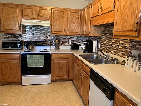 Come in to a perfectly priced prize with woodland views. Not only is this one story end unit townhome lovely and comfortable, but it provides such great features as modern kitchen with tile backsplash and pantry, patio. 2 bedrooms, 2 baths. You will find it to be conveniently located near shops. Accent it any way you please, you have the ideal background of neutral decor. There are no washday blues here, thanks to the laundry room. Laminate flooring, Freshly painted interior, private master suite,