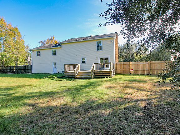 Almost an acre of beautiful marshfront property with updated/upgraded kitchen new in 2016 with grey ceiling-height cabinets, granite counters, farm sink, stainless fixtures, tile, dishwasher, stove and range hood, and refrigerator. walk in pantry. interior freshly painted June 2019. New blinds throughout. Living room with wood floors, wood burning fireplace, ceiling fan & new book shelves. Dining room has wood floors & beautiful new light fixture and leads out to the large deck for entertaining. Extra storage under the stairs. Half bath with pedestal sink & tile floors. Wood staircase leads to spacious second story with loft. Two upstairs bedrooms have ceiling fans. Third room off loft perfect for office or playroom. Huge fenced yard!