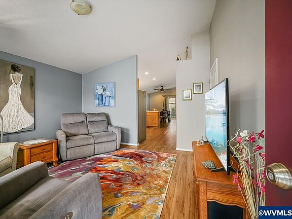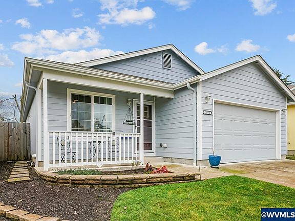 Step into homeownership and build some equity with this low maintenance, neat as a pin modern home in West Salem's Kalapuya school district! Quaint front porch opens to vaulted living room w/newer LVP floors; the roomy kitchen with stainless appliances & eating bar then opens to extra large dining area. AC included with 3 bedrooms, 2 full baths, a tidy 2car attached garage and an easy care fenced yard with slab patio. Home is all on one level with very little slope to the driveway. Great opportunity here!