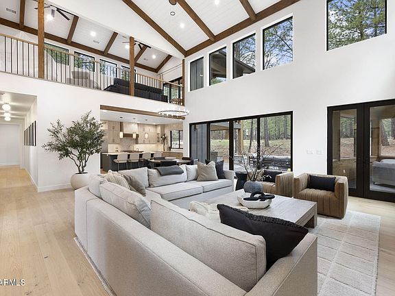 Nestled on 2.35 wooded acres in a tranquil cul-de-sac in Forest Highlands, this 5,278 sq ft masterpiece redefines mountain modern elegance. Encircled by towering pines and wrapped in serene privacy, this architectural gem is a haven for those seeking luxury and tranquility.