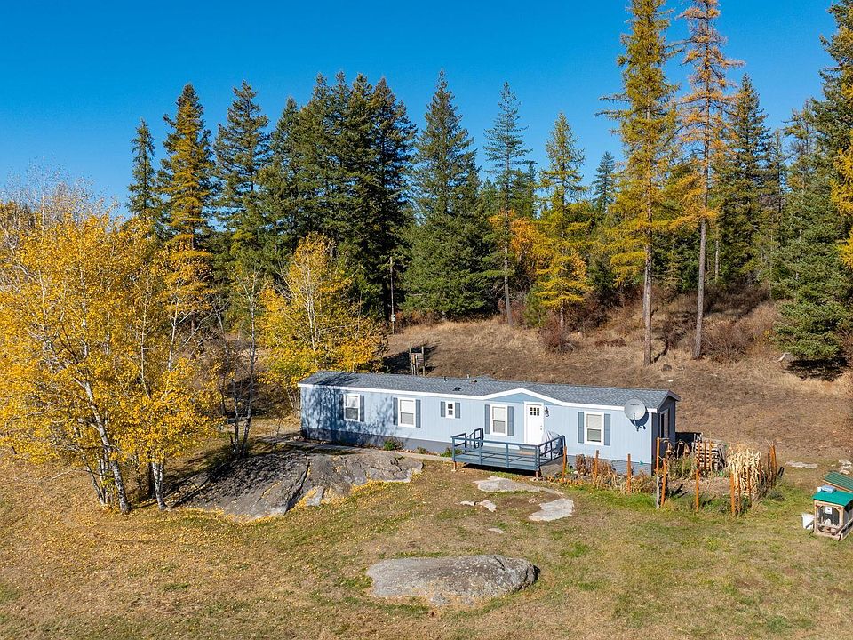 Located near Jewel Lake, this 10 acre property located on a county-maintained road offers quiet solitude and a rural lifestyle with the opportunity to build your homestead here. The existing home is a single wide mobile home extensively remodeled in 2024 and ready for you to make it your home base or use it temporarily while you build your dream home overlooking the valley. The property includes a separate RV pad with full hookups ideal for guests, potential rental income or as a new building site. Enjoy privacy, a year round creek, wooded surroundings and abundant wildlife in this peaceful setting yet still be close to town amenities, schools, and recreation on nearby lakes and trails. Outbuildings include a 12' x 16' storage building/shop with lean to and a 13' x 13' cabin with power to go with your RV spot. Whether you're looking for a weekend retreat, investment property, or a place to put down roots, Jewel Lake Rd offers endless possibilities and North Idaho Charm.