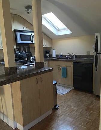 Spacious, sunny one bedroom for rent available for a year lease starting May 1st -- $1,425 per month Located off 25th on Marshall Street in Northwest Portland Alphabet District. Just a few short blocks from restaurants, breweries, bars, and shops. Easy commute to downtown Portland. The apartment is approximately 900 sq. feet, with new carpet, granite countertops in kitchen and bathroom, stainless steel appliances - dishwasher, fridge, and microwave included, cable-ready, great storage, walk-in closet, separate living and dining rooms, breakfast bar, street parking, laundry in basement, and shared outdoor patio with table and chairs. Third floor with great view of the Fremont and also the St Johns Bridge in the distance. View of Mountains on clear day. Sorry, no pets. Owner pays for trash and water, renter pays for electricity and gas.