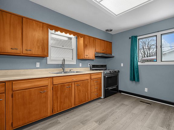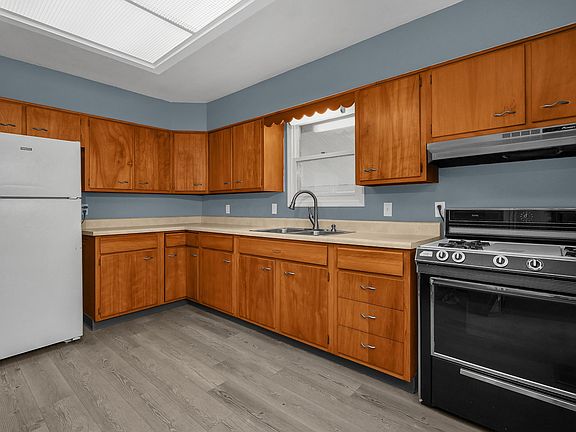Move in ready! This well kept ranch features 3 nice size bedrooms, 2 full bathrooms, large great room kitchen with eat-in space and huge full sized basement. New wood flooring (2021) in great room, kitchen and hallways. Bedrooms have real hardwood flooring. 3rd bedroom has cedar closet. Newly painted areas including entire basement. Be ready to park your cars in the oversized 2.5 car garage, which features built-in work table/bench. The long concrete driveway offers plenty of parking as well. The backyard is fenced in. Enjoy evenings out on the covered front porch. New hot water tank (2022), furnace serviced 11/22, new side storm door, new lower level vanity. Comes with security system. This home is a must see! Centrally located close to downtown Columbus, Grandview, and Franklinton.