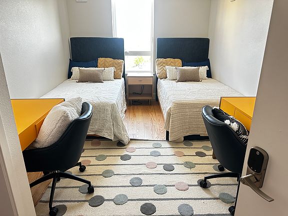 Starting at $1,350.00 per bed , ALL UTILITIES INCLUDED! (12 month lease) Rent for just 6 months Aug-Dec 2025. Option for Private room available as well. Find your home for Fall! Modern and fully furnished 4 bedroom 3 bathroom penthouse! Top floor unit, same floor as the sky lounge & the gym! Lease by the bed for the semester only, for $1650 a month! We pay for WIFI, electricity and gas, so you don't have to worry about setting any of that up! Apartment features: Spacious private balcony right outside the living room, amazing views of San Francisco's skyline and Berkeley hills, in-unit washer & dryer, 32-inch Smart TV, custom-designed furniture, marble countertops, stainless steel energy star appliances, contemporary high-end gold finishes, high ceilings, large double-pane windows, hardwood floors and keyless entry. Lease by the bed for 12 months, only for $1350 a month Lease by the bed for the semester only, for $1650 a month We pay for WIFI, electricity and gas, so you don't have to worry about setting any of that up!