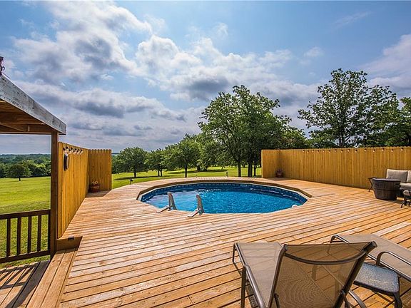 Wow, factor right here! 30x50x10 Wood frame shop with electric Covered front porch Covered back deck with Bar 10,000 Gallon pool with deck Beautiful groomed backyard Mature trees Wildlife Scenic views Large storm shelter 7x10 Gutters Metal roof in 2011 Concrete board skirting 2 car covered parking Livestock allowed Storage Shed Well house with concrete floor Upgraded windows & sills Upgraded Insulated siding Wood burning fireplace Updated sinks, toilets, hardware Master with Large Walk-in Closet, dual vanities, garden tub, shower Updated flooring Updated lighting Well & Septic & water softener Large kitchen with breakfast bar Appliances stay: fridge, freezer Jack & Jill bathroom with dual vanities + shower All beds with walk-in closet Formal dining.