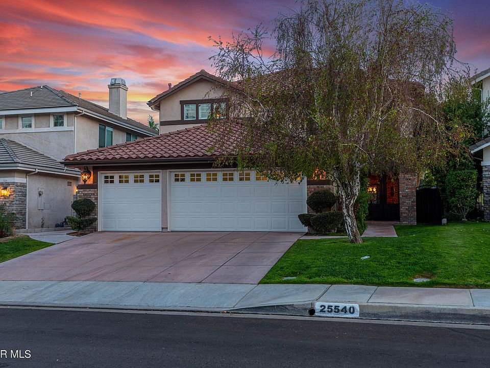 Tuscan Entertainers Dream w/ VIEWS! Enjoy the sunsets from this completely remodeled pool home in the highly coveted area of Stevenson Ranch. Enter thru custom double front doors to large bright high ceiling formal living room complete w/fireplace. Downstairs has large travertine flooring, plantation shutters & recessed lighting throughout. Formal dining room looks like a Tuscan wine cellar w/stone walls and pillars separating the 2 rooms. Gourmet kitchen has large Center island w/granite counters, stainless steel appliances include a gas range/double oven and cooper double sink. Attached to kitchen is an open kitchen nook w/ceiling fan. The family Room w/fireplace includes custom built in bookshelf/display shelf, surround sound and ceiling fan. Bonus room downstairs can be used as an office/guest bedroom. There is a full bath located downstairs next to bonus room. Direct access to three car garage from laundry room equipped with wash sink. Hardwood staircase & upstairs hall w/iron banisters. All upstairs rooms have neutral short shag carpet, wooden plantation shutters & ceiling fans. Room 2 & 3 are separated by a jack and jill bathroom w/ double sinks. One bedroom has walk in closet and other has mirrored closet doors. High ceiling large master suite includes fireplace & duel walk in closets. **NEW spa like master bath! Stand up shower w/dual shower heads, oversized spa bathtub, and double sinks. Home is complete w/dual zone HVAC and assumable Solar panels. $$$ saved on electric bill on hot summers. Backyard has beautiful sunsets and views of Santa Susana Mountain Range. No homes in front or behind home. Fully covered patio sitting area with stamped concrete and grassy areas. Pool is equipped with wireless AquaLink 2.0 and gas heater. Prime location, easy freeway access, close to shopping, restaurants, parks and Award Winning Schools. Low HOA and NO MELLO ROSS!