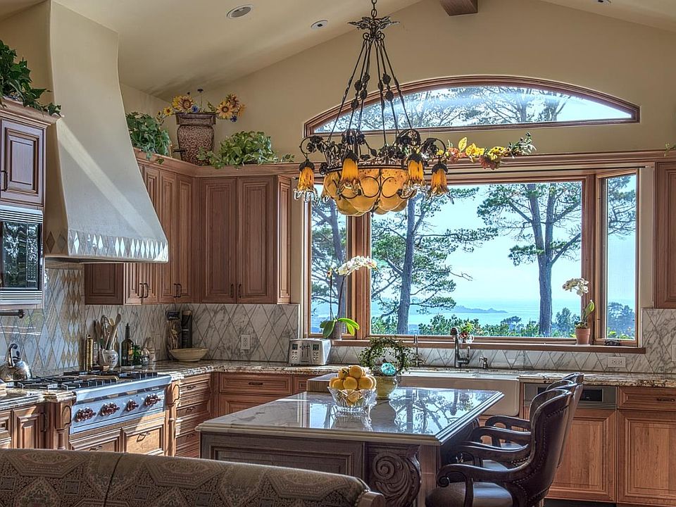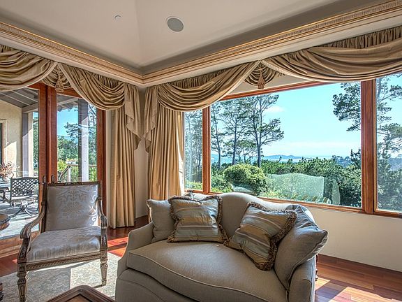 Enjoy a short, gentle uphill drive on a wide country road to nearly the top and you will find ocean and Pt. Lobos views from this street to street lot where a magnificent Mediterranean Villa has been recently built. Finished with materials and thought to create an elegant yet cozy design, there are all the right rooms for formal and informal living all of the time. Offering ocean views from many rooms there are also a theater, wine cellar, four garages and a hobby room. Surrounded by gardens and orchards.