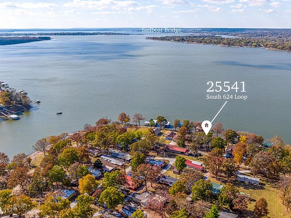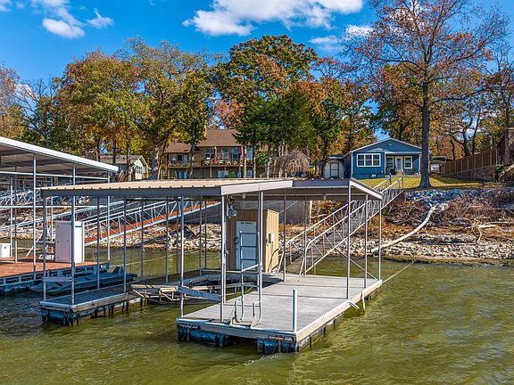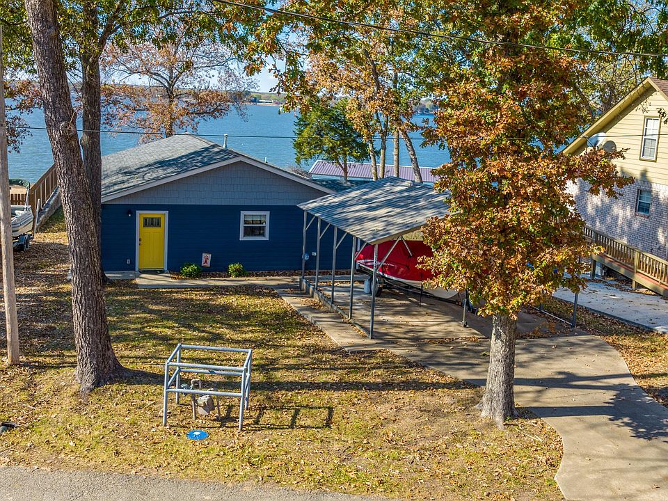 WATERFRONT HOME WITH DOCK. Home built in 2018. 2 BR, 2 BA, 2-car carport (20 X 20). View is a mile across the lake. Open living, kitchen island, hard surface floors and split floor plan with primary bedroom suite on the lakeside. Should be a good VRBO opportunity. Covered patio (14 X 18) overlooks the lake could easily be screen room. Natural gas to gas grill, stubbed off for water heater and dryer. Garden Shed is 8 X 12.