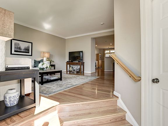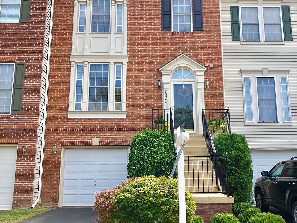 This beautiful, open NV Rothchild has a large bump-out on all three levels. Brick front with middle level entry. Hardwood floors throughout entire middle level. Updated 1/2 bath, and living room with huge windows. Open kitchen with granite, stainless appliances, eating bar, sitting area, pantry, and sep. dining room. Large deck is great for entertaining and grilling. Upstairs has grand master suite with wall of windows and walk-in closet. Updated master bath has marble top vanities and sep. shower and soaking tub. Two good sized additional bedrooms and new updated tile in upper hall bath. Lower level is fully finished with built-in bookcases, gas fireplace, lots of room and a walk-out to a fenced yard. True laundry room and 1/2 bath on lowest level. Steps from the South Riding Golf Course, plenty of extra parking right in front of home. Not a thru street. Easy walk to shopping center/Starbucks.