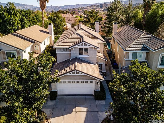 Welcome to Stevenson Ranch! This charming Pacific Colony home offers 3 bedrooms and 3 bathrooms with the possibility of converting the lower bonus room into an office or a 4th bedroom. The entry opens into the ample living room with plenty of natural light. Walk into the den and kitchen area and visualize the perfect place for family time, sharing a meal, sitting by the fireplace or stepping out to the beautiful patio/back yard for a BBQ or relaxing while enjoying serene views. The second level offers a quiet master bedroom and master bathroom with views to the back yard and two additional bedrooms in the opposite side sharing a bathroom. The property has many features such as recessed lights, ceiling fans, selected windows with plantation shutters and many areas for storage, including custom cabinetry in the garage.
