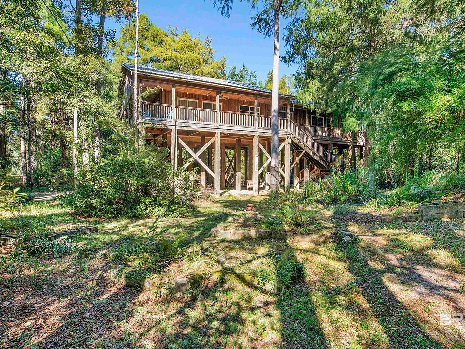 Located on STYX RIVER, this charming, raised beach style home sits on approx. 3 ACRES and 200 feet of RIVER FRONT! Nestled in the trees, it's the perfect get-a-way where you'll enjoy the peacefulness of Styx River & the beauty of mother nature! Just a few steps down to the River and there's a SANDY BEACH AREA. You'll enjoy swimming, tubing down the River, or Kayaking! This home is EASY to access and convenient to Mobile and Pensacola! Traveling on Interstate 10 headed East, you take the next exit past Bucee's (Exit 53) and the home is less than 5 minutes from the Interstate. The home has a WRAP AROUND PORCH & a SCREEN PORCH off the Primary Bedroom. In the spacious Living Room, you've got numerous Sliding Doors for you to enjoy the Views & Vaulted Pine Ceilings! The Kitchen offers an Island with Granite Countertops & Stainless Appliances. The Primary Bedroom has Vaulted Pine Ceilings and Slider Door access to a Screen Porch. The Second & Third Bedrooms also have slider door access to the Porch. Tile Floors are throughout the home. Come and RELAX on the RIVER!