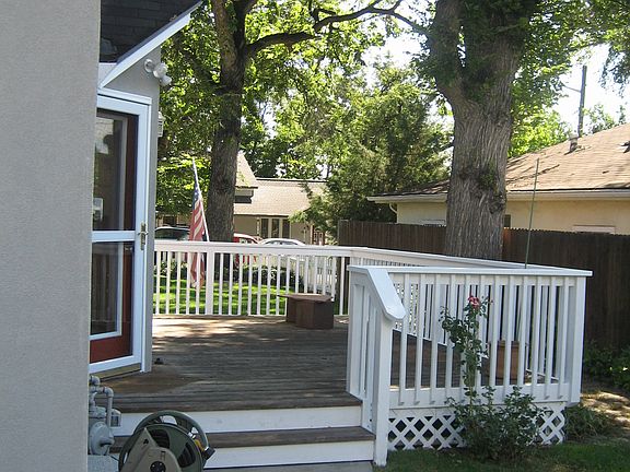 Charming bungalow updated, and ready to move in. Great fenced yard with deck, raised garden, mature trees and lawn. Detached two car garage accessed from alley with additional off street parking. Covered entry area. Living room opens to dining and kitchen, with French doors to deck. Master suite separate from other bedrooms and features new bath with French doors to private walled patio. All closets have built in storage. One block from Sloan's Lake and Historic Downtown Edgewater. Convenient to schools, shopping, and public transportation.