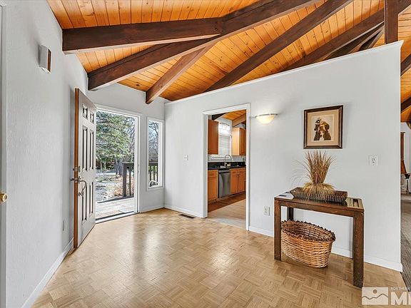 Where Nevada’s natural beauty meets timeless potential, this Westside Carson City gem delivers space, style, and soul. Perfectly perched on a 1-acre corner lot, this one-of-a-kind property is surrounded by stunning mountain vistas and desert skies that go on forever. Whether you're hosting sunset BBQs, parking the RV in your full RV garage, or finally starting that garden you've dreamed of — there's room for it all., Step inside and feel the possibilities: soaring dome vaulted wood ceilings bring warm character, while the open-concept living, dining, and kitchen areas invite connection. The kitchen blends modern charm with bold black granite, shaker cabinets, and appliances that are ready to serve. With three generously sized bedrooms plus a bonus office space, this home adapts to your lifestyle with ease. And the backyard? It’s not just a yard — it’s a canvas. Picture long summer evenings on the wraparound deck, quiet mornings in the fully enclosed gazebo, and endless space for future dreams. Ready for its Mid-Century Modern glow-up, this custom home is more than a place to live — it’s a place to thrive.