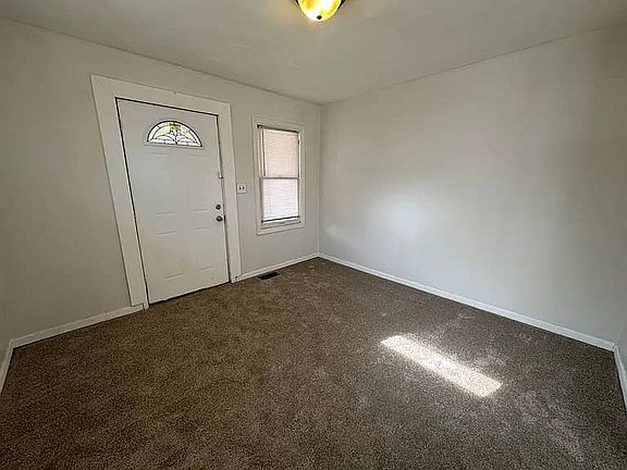 Introducing this one-story duplex with 1 bedroom, 1 bathroom, living room, dining room, unfinished basement, kitchen and rear shared garage. This home has been freshly painted with new carpet. Many upgrades including new kitchen cabinet, kitchen stainless steel sink, bathroom vanity, and more. This property does not include any appliances. See below for appliance hook-up information. The covered front porch is perfect for peacefully watching the cars go by. Introducing this one-story duplex with 1 bedroom, 1 bathroom, living room, dining room, unfinished basement, kitchen and rear shared garage. This home has been freshly painted with new carpet. Many upgrades including new kitchen cabinet, kitchen stainless steel sink, bathroom vanity, and more. This property does not include any appliances. See below for appliance hook-up information. The covered front porch is perfect for peacefully watching the cars go by.