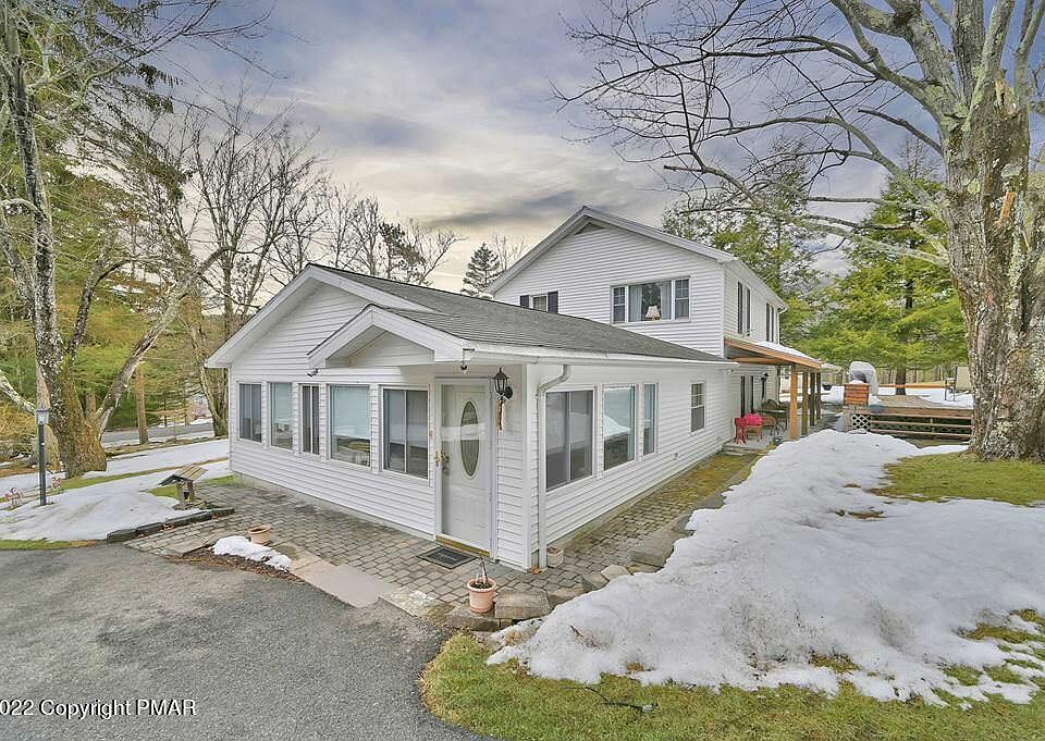 STUNNING PROPERTY WITH SPACIOUS HOME, INGROUND POOL AND 4 SEPARATE DECK/PATIO AREAS on 2.3 acres! Relax by the pool at the pavilion, or hang out for cocktails on the raised deck or covered patio by the house, either way you will wash away the city atmosphere as you immerse yourself in Pocono tranquility. The best of the best is here for you! The property includes a 3 bedroom home, 2 car garage, brand new shed (car ready w/ a regular garage door) 3 more sheds spaced among the trees, for yard tools, recreational vehicles, sports shed, or whatever you need! Home includes a huge kitchen, great living room, laundry with walk in closet, large addition for dining and family areas, primary suite, massive bath, and 2 more bedrms. YOU MUST VISIT TO SEE THE GLORY OF THIS PROPERTY! LOW TAXES