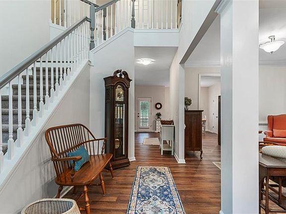 Beautiful brick front home situated at the end of a cul de sac on a large wooded lot. Two story entryway leads to an open dining room, living area. Kitchen features 42" cabinets, new stainless dishwasher and an eating area plus optional bar seating. Opens into family room with gas starter fireplace with marble. Large sunroom adjoins the family room for extra living space. Home in the process of many updates which include - new granite in the kitchen, updated kitchen and bathroom cabinets, all new LVP flooring throughout main level, new paint through out, newer stainless steel appliances, new backsplash, new ceiling fans, new flooring, new hot water tank. Large master suite with sitting area and new carpet.Master bath has frameless shower and garden tub with granite counters porcelain tile and freshly painted cabinets. All bedrooms are nice size with large closets. One A/C unit i 5 years old. The roof is four years old. Beautiful plantation shutters all downstairs. Basement is unfinished and stubbed for a bathroom.Large deck with surrounding gardens and sitting area is perfect for entertaining. Basement has large concrete pad that provides another outdoor area. House has been pressure washed and painting touched up outside. The garage has an extra storage area. New garage door and opener.