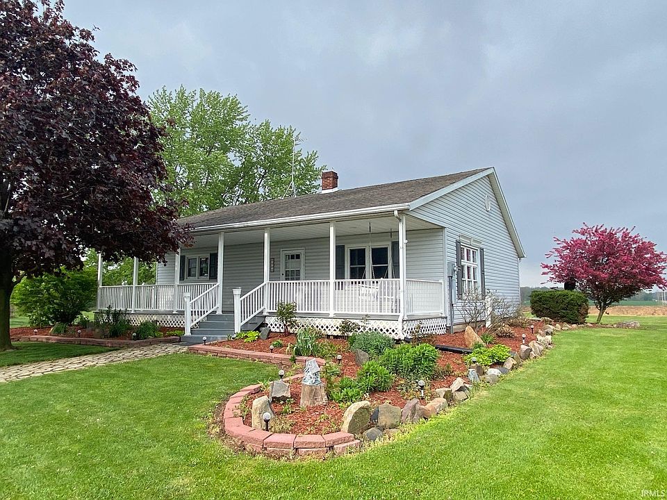Come home to the country on nearly 4 acres! Ranch style 3 bedroom 1 bath home with 60x30 pole barn. New carpet in LR and bedrooms, new plumbing and fresh paint make this move in ready. Kitchen appliances include electric range, refrigerator and dishwasher. Full bathroom has multi jetted shower, new vanity & vinyl flooring. Large covered front porch (8x40) is a great spot for enjoying the sunrise, the perennial flowers, nature and yes... the porch swing stays! Pole barn has concrete floor, workshop area/bench, and 3-10' doors. Family room in basement, washer/dryer, water softener and dehumidifier. Total finished sq ft approx 1840. GFA furnace & central air, 200 amp service, and Fiber connect internet from RTC available! Immediate possession at closing!