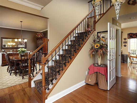 Seven years young! This remarkable brick colonial home is decorated in today's tones. 2 story foyer, 9' ceilings, plantation shutters and hardwood flooring throughout the main level. Dining room is open from the entry w/crown molding, chair rail, a stunning chandelier. Center island kitchen boasts granite counters, cherry cabinetry, large pantry, ceramic backsplash w/accent tiles. Stainless appliances are included. Opens to the breakfast area and family room, sliding door to rear patio. Convenient first floor laundry. The family room features painted box ceiling, gas fireplace, French doors form foyer to the den, 1st floor powder room. Master suite features a tray ceiling, hardwood flooring, large walk in closet. Master bath includes ceramic flooring, vanity w/granite, jet tub, double headed shower, private water closet. 2nd & 3rd bedrooms offers a Jack/Jill bath. 4th bedroom has a private bath. Finished game room w/a full bath. Nice rear patio overlooking terraced yard. 3 car garage.