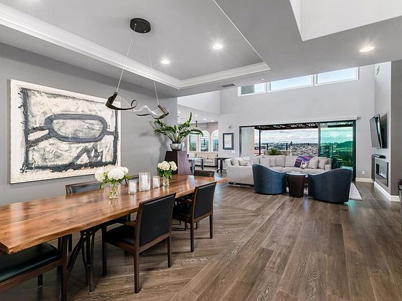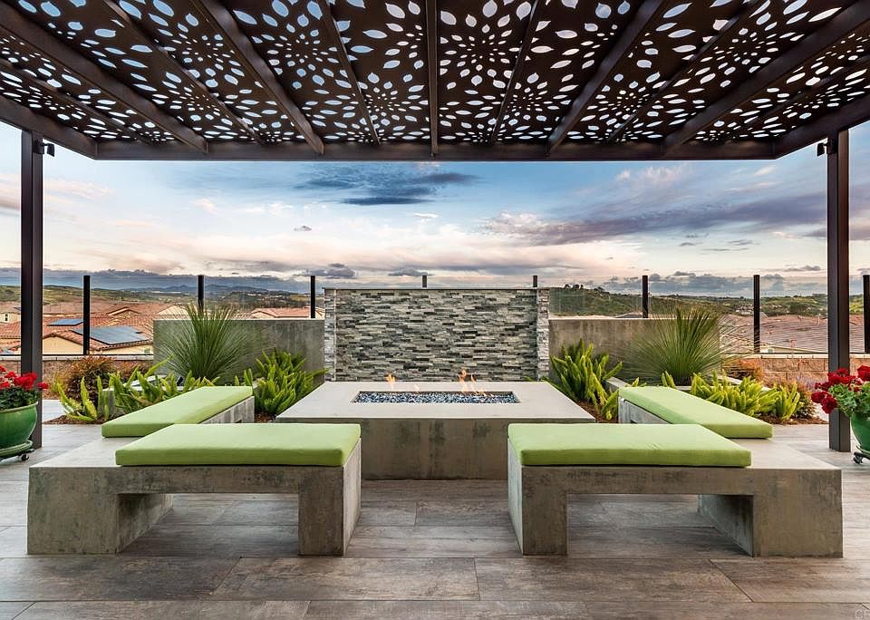 A rare offering of matchless style, luxury & privacy in gated Bluff community of Robertson Ranch! Masterfully designed Toll Brothers estate, w/ over $1M in upgrades, introduces an ultimate embodiment of indoor-outdoor living & eloquent architectural details, showcasing exquisite contemporary design elements. Pano sunrise mountain & hillside views w/ southwest ocean horizon views! Lives like a single story w/ wood floors & 1st floor primary suite & versatile ensuite BR. Grand foyer greets you w/ 20ft ceilings extending to the great room w/ linear fireplace. 16’ pano glass stacking doors work to create an alfresco setting expanding the comforts of the interior outdoors. Gourmet chef’s kitchen w/ high-end Wolf / Sub-Zero appliances, crafted cabinetry accentuated by Caesarstone quartz counters & subway tile backsplash continuing into the breakfast nook w/ arched windows affording inspiring views & butler’s pantry w/ walk-in storage. Kitchen island w/ granite counters, Sub-Zero wine fridge & commercial-sized SS sink w/ dual faucets. Coffered ceilings & modern chandelier in formal dining room. Primary suite w/ coffered ceilings, picture windows & opulent ensuite w/ porcelain floors, glass-enclosed shower, soaking tub & 2 walk-in closets w/ custom cabinetry. Bonus living in expansive loft w/ built-in media center, wall of windows & sunrise views! 3 upstairs ensuite BRs w/ walk-in closets. Exceptional backyard offers a perfect balance of beauty & function w/ built-in fire pit w/ bench seating, Hestan outdoor kitchen, turf area & garden w/ raised concrete beds. Owned solar & Tesla back-up battery, laundry rooms on both levels & 5” California shutters. Resort style community pool & spa, clubhouse, parks & more! Easy I-5 access, 3 miles to Carlsbad Village & beaches.