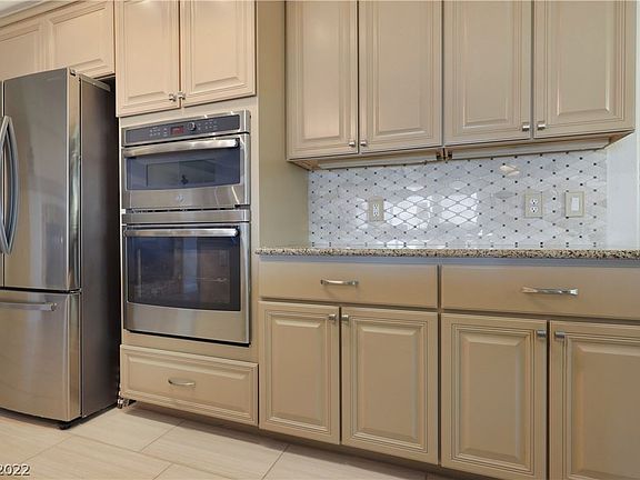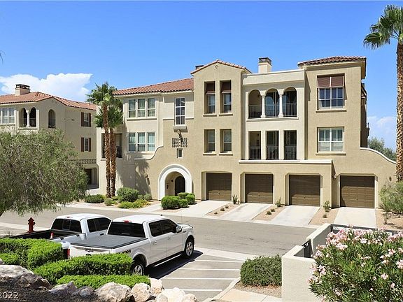 Experience the Las Vegas Strip, Mountain and City views from the largest floor plan in Terra Bella âEUR" a gated 55+ Anthem condo community. Live your carefree life in this premier 2 bdrm, 2-1/2 bath, den, 2135 sq ft open floor plan with oversized 2 car garage. Renovated kitchen features granite counters and center island, custom backsplash, soft close cabinets, stainless steel appliances. Modern wood-like tile floors throughout, 2 en-suite bedrooms, great room with gas fireplace, den with double doors, office nook. Convenience items include Anderson windows that tilt for exterior glass cleaning, remote blinds leading to large balcony w/ fireplace, 2-zone HVAC with newer rooftop unit. Mediterranean inspired architecture, residential buildings are 3 story elevator access with a central courtyard. Community amenities include a resort style pool and spa, poolside kitchen and cabana, BBQ areas, clubhouse with game room/library and fitness center. DonâEUR(tm)t miss out on this one, Welcome Home!