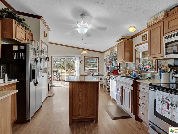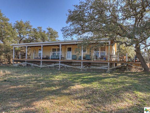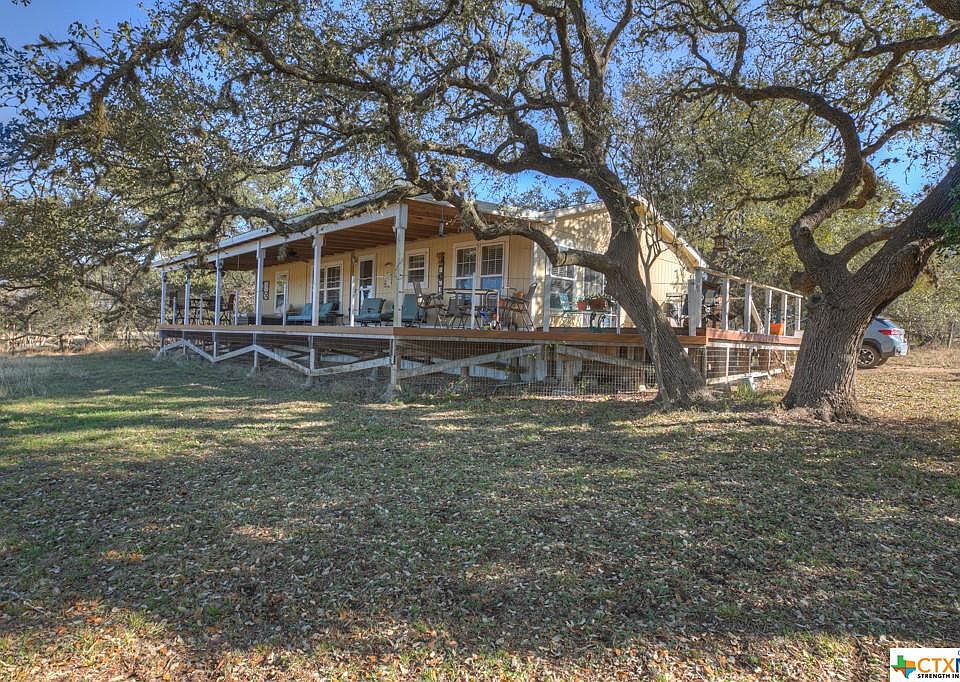 Secluded, remote, agriculture exempt on 60.57 acres, just minutes from San Marcos, Wimberley, and Canyon Lake. This well kept 3 bedroom/2 bath doublewide mobile home, with wood burning fireplace is approximately 1300 square ft., with 3 walk in closets. The kitchen is shining bright with new quartz counter tops. Breathe in the fresh air and see the amazing sunsets, relax and take in the view and watch the wildlife from the full length covered porch while grilling on the open air deck. Property has both open pasture and heavily wooded pasture with gated access on a private road and sits approximately 3/4 miles off the main road. Lots of room for the kiddos to explore, dad to hunt, while mom relaxes in the Garden Tub in the master bath, or rent and build your dream home. Call for appointment. All measurements and acreage are approximate.