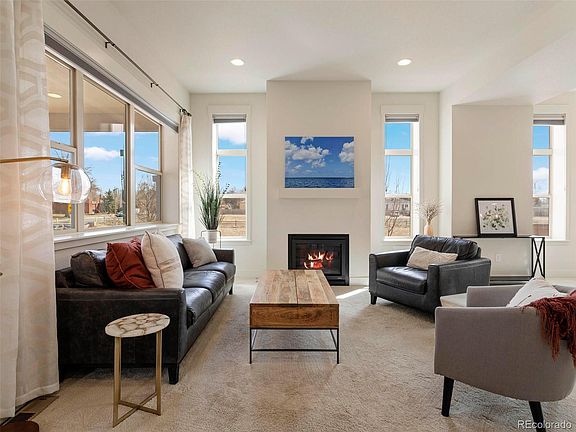 Thrive in Central Park! First time on the market, a 4 bedroom, 4 bath with a finished basement and an attached garage. On a corner lot across from green space, you can watch people walking dogs from your southern windows. A spacious great room with generous living areas, living room with fireplace, dining room with sliding doors to a south-facing patio, and a kitchen featuring a huge island, stainless appliances and granite counters. A walk-in pantry, coat closet and powder room complete the main floor. Second floor has three bedrooms, two baths including a spacious primary suite with a walk-in closet. The primary bedroom has wonderful light, a walk-in closet and ensuite bath. The finished basement has a huge family room with natural light from the window well, a guest bedroom with a full bath and lots of storage. A tankless hot water heater means endless baths if that is your style. On a block of well cared for single family homes, siding to a wide green space, on a quiet street but close to through streets leading easily to downtown or to the airport or DTC via I-225. Walk or bike to Stanley Marketplace, Eastbridge and all the amenities and green spaces of Central Park!