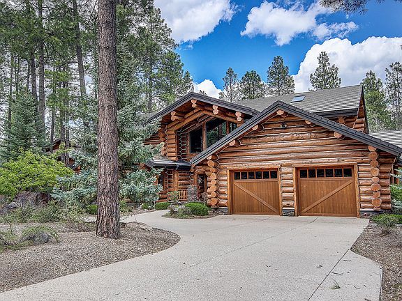 This custom designed Bibs log home is nestled in the pines, overlooking the 13th fairway of the Canyon Golf Course. The massive hand-hewn logs from British Columbia and all the finest finishes throughout the home make this a must see home. When you walk through the front door, you are welcomed by soaring ceilings and a wall of windows. The stone fireplace and and antique oak floors that have been re-sawn & milled will be sure to grab your attention too. You will find an inviting dining area just off the great room surrounded by windows that truly bring the panoramic views from the outside into the home. The kitchen is outfitted with high quality stainless steel appliances, the home has radiant in- floor heating and air conditioning to cover both your winter and summer needs.