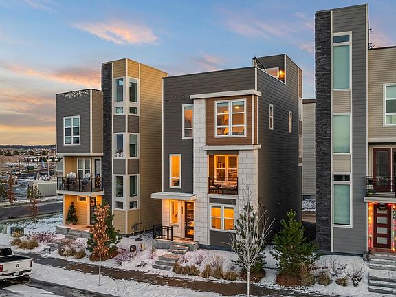 Experience low-maintenance, modern living in this exquisite home, featuring a rooftop deck with breathtaking mountain and city views, located in the highly sought-after Meadows community. This home offers convenient access to a variety of trails for walking, biking, and hiking, as well as nearby restaurants and other desirable local amenities. Built in 2020, this home still feels brand new and has been meticulously maintained and upgraded throughout. The kitchen boasts a large island and double oven, ideal for hosting. The luxurious primary suite features a walk-in shower, double vanity, and a generously sized closet. The rooftop deck offers expansive views and is equipped with a gas hookup, making it the perfect spot for entertaining on a beautiful Colorado day. The Meadows is centrally located, providing easy access to shopping, dining, and entertainment options. Positioned between Denver and Colorado Springs, the community offers a prime location for commuters. The nearby I-25 highway connects you to both cities within 30-45 minutes, allowing you to enjoy urban amenities while living in a peaceful suburban setting. Ask about lender incentives on this home, worth up to $10,000!