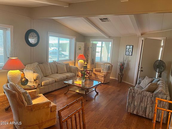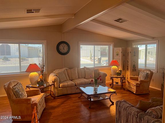 THIS HOME IS A SPACIOUS BEAUTY, WITH A NEWLY PAINTED STUCCO FINISH, ON AN OVERSIZED LOT. STUNNING 2 BEDROOM, 2 BATH HOME WITH NOT ONE, BUT TWO ADDITIONAL SITTING ROOMS IN ADDITION TO A SEPARATE FAMILY ROOM AND LIVING ROOM. OH, DID I MENTION A SEPARATE STORAGE ROOM WITH A SECOND REFRIGERATOR AND AN OVER-SIZED LAUNDRY ROOM?! HARD TO FIND GARAGE. FULLY UPDATED KITCHEN WITH NEWER APPLIANCES. HEATING AND COOLING JUST TWO YEARS OLD. DUAL PANE WINDOWS. FRONT PATIO TO ENJOY ARIZONA'S BEAUTIFUL SUNSETS, OR SECLUDE YOURSELF ON THE BACK YARD PATIO. SO MUCH TO OFFER HERE! MOST OF THE FURNITURE AND FURNISHINGS ARE AVAILABLE UNDER A SEPARATE BILL OF SALE. YOU WON'T WANT TO MISS THIS ONE!