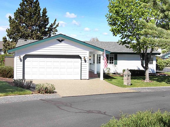 Beautiful Mountain View Park clearly abounds with pride of ownership in a unique & highly sought - after community only a minute or two from medical & shopping. - Lovely corner lot home with large fencible side yard & beautiful aggregate driveway to finished 2 car garage. 3 Bedroom, 2 Bath home features vaulted ceilings, laminate flooring & many other updates/upgrades. Bright, white kitchen with quartz counters includes gas range & refrigerator. Master Bath with step-in double shower. Pleated shades & vinyl windows. Roof was new in 2015. Recirculating gas heated hot water means no water waste & no waiting. Washer/Dryer, Refrigerator, shed, attached garage cabinets with pull out shelving, wall bracket for TV in Master Included. Gated sociable community with Pool & Pickleball Court. Front Lawn Mowing included. Side yard mowed for extra fee. HOA fee $85/month.
