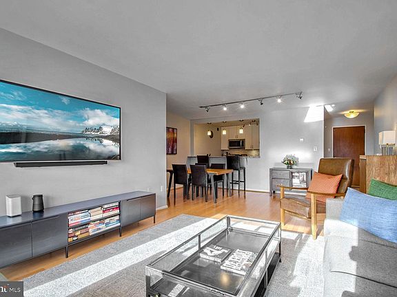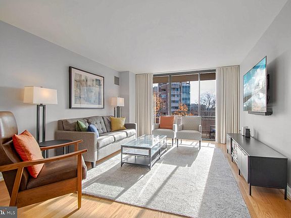 This apartment has been updated throughout - including Stainless appliances, stacked washer/dryer, and dishwasher. The large living room and dining area have gleaming hardwood floors. Situated on the 6th floor there are beautiful summer wooded views and stunning evening views of Rosslyn and beyond. Sun filled throughout - there a sliding floor to ceiling doors to a large balcony