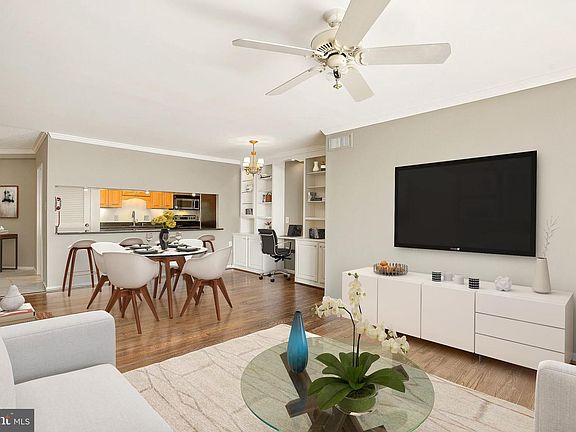 - Built-Ins, Combination Dining/Living, Crown Moldings, Floor Plan - Open, Tub Shower, Upgraded Countertops, Window Treatments, Wood Floors, Ceiling Fan(s)