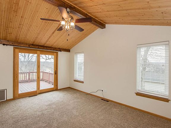 Engaging & upgraded end unit ranch style condo in a convenient location w/ wonderful park like views of trees & green space close to schools, shopping, & more! Fantastic 12x16 sun rm addition w/ a knotty pine plank vaulted ceiling & adjoining deck; luxury vinyl tile flooring, newer appls including an LG French door style refrigerator & gas range, center island w/ bar & a pantry; living rm w/ dramatic vaulted ceilings & a corner FP; M suite w/ a sliding barn door, no step all tile shower & walk-in jetted tub