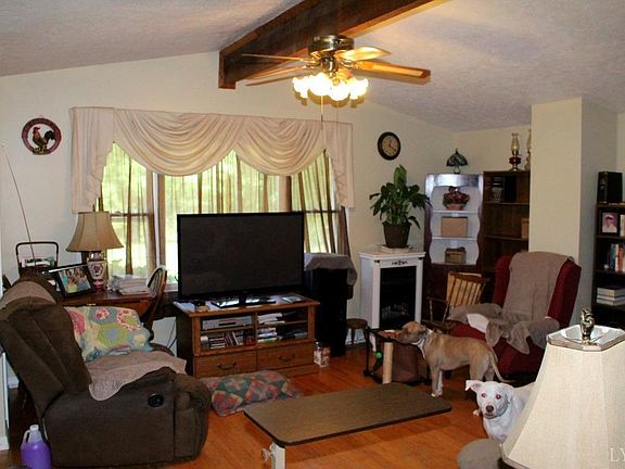 Country Charmer- Enjoy the privacy of the Country in this one level home. The Living Room features a high vaulted ceiling with exposed wood beams and great natural light. The Kitchen offers premium cabinet space on 3 different walls, with an eat in counter as well as a large Formal Dining room. One bedroom at the far end of the home with a full bath just around the corner and the other 3 bedrooms at the other end of the home with the Master having an en suite. A separate laundry room with cabinets, an enclosed back porch with access to the back yard. A large front porch is perfect for enjoying the outdoors and for entertaining. A huge 45x34 detached garage with a concrete floor and electrical service makes the perfect place for storing tractors or working on cars. Originally a mobile home with modular additions this home features a really nice flow and floor plan. Come to the Country but be only 5 minutes from 501 and about 10 minutes to Rustburg.