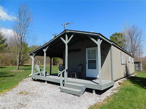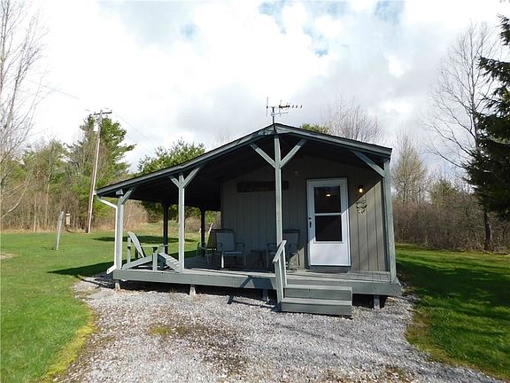 ESCAPE to this well-imagined private PARADISE of 3 Woodtex structures NESTLED IN NATURE! ALMOST 3 ACRES of beautiful private land with YEAR ROUND 14x36 cabin complete with wrap around porch! Main cabin is one bedroom, one full bathroom, with gas fireplace, Corian countertops and sink, surround sound system, & sliders to the porch. SUPER WELL INSULATED walls and floors. Custom GAS FIREPLACE comes with built-in blowers to distribute the heat and a timer & thermostat to have it all ready for your arrival. Additional baseboard heat in bathrooom. BURIED ELECTRIC WITH CAMPER HOOKUP. 14x28 small barn/garage holds all your toys, tools & shop needs. 10x16 Bunkhouse currently sleeps 5 but room for more. Property includes all interior and exterior furniture, riding lawn mower, gas grill, weed wacker and many more tools! Extra storage added on to back of bunk house. Great hunting area with TWO TREE STANDS! One heated and enclosed, one exposed. High producing well. Don't wait! It's ready for your memories! MAGNIFICENT STARRY NIGHTS right next door to HUNDREDS OF ACRES OF STATE LAND!