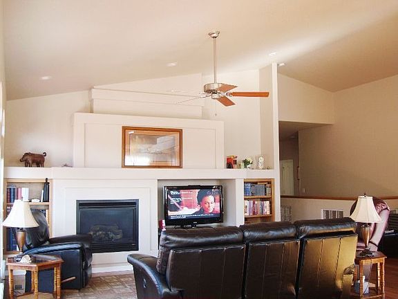 Open 'great room' contemporary rancher ~ immaculate condition inside & out ~ vaulted & 9' ceilings ~ 3 fireplaces ~ lots of light & solar gain ~ 3 bay windows ~ A/C, security & radon systems ~ stucco exterior w/tile roof ~ lots of hardwood floors ~ rounded corners ~ walkout basement ~ french doors ~ built-ins & entertainment centers ~ wet bar ~ study has closet & could be 5th bedroom ~ double ovens + Microwave oven ~ professionally landscaped ~ beautiful city views ~ pines, scrub oak & wildlife ~