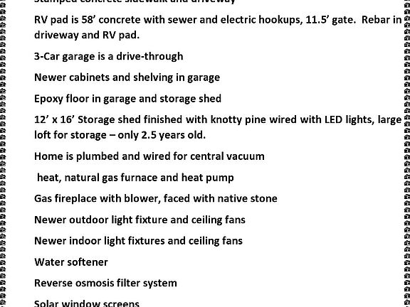 - inclusions: Range, Microwave, Ceiling Fan, Storage Sheds, Window Coverings, Water Softener: Own