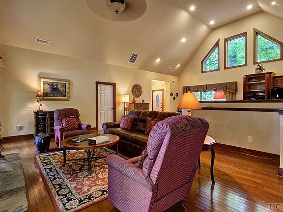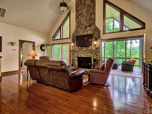 Lovely mountain VIEW home in desirable Whisper Lake community features an open, spacious floor plan with hardwood floors, 20 ft. cathedral ceilings providing lots of natural light, gas fireplace with floor to ceiling stone, roomy kitchen with custom cabinetry, large pantry and stainless steel appliances, under cabinet lighting and breakfast bar, dining area, 1/2 bath Master BR/BA with large walk-in closet, with laundry on main level. Also on main, double French doors leading to a 16 x 24 foot screened deck with cathedral ceiling perfect for enjoying dinner, cocktails and the beautiful Mountain View. Screened deck also has screening beneath entire deck flooring as extra protection. Lower level features a large family room, another Master suite with large walk-in closet, 3rd bedroom with adjacent full bath with plenty of closets for storage. Also includes heating/air with 2 zones and a whole house surge protector. Homeowner has paid for the recent installation of high speed internet. Circular, flat, paved driveway for easy access and plenty of parking. The home furnishings are negotiable. Sapphire Valley amenities included.