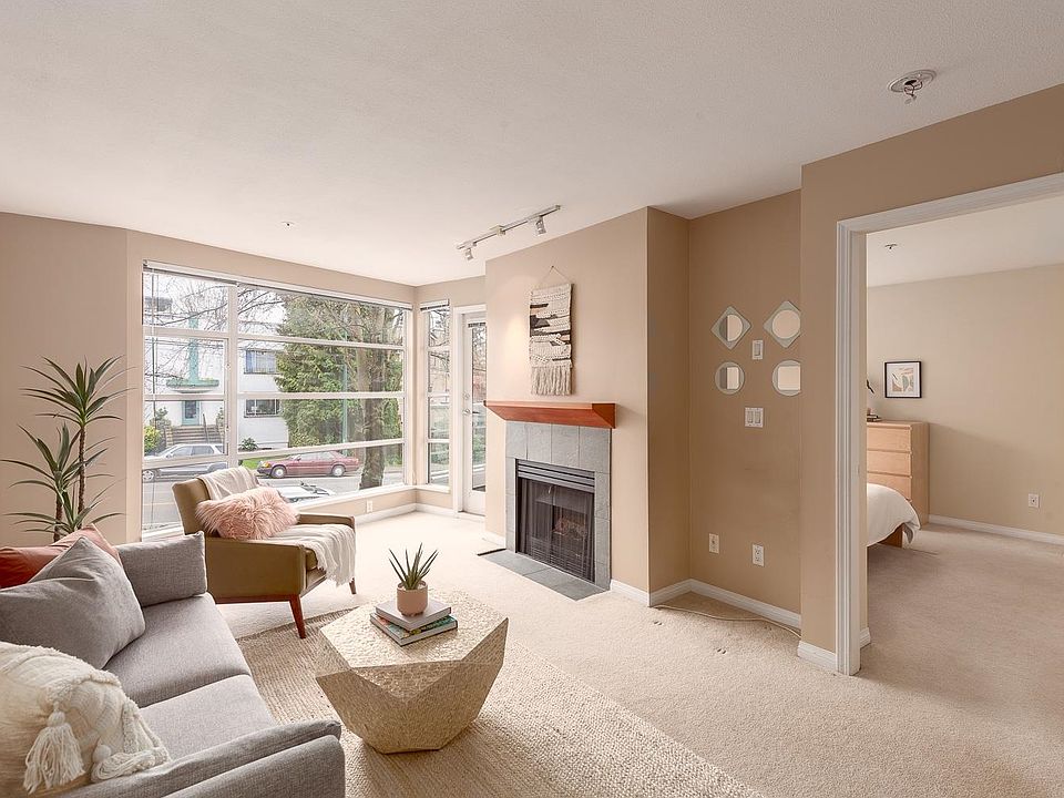 Prime Kitsilano condo that ticks off all the boxes! This lovely 1 bedroom + den, 1 bathroom unit features an open floor plan, bright exposure, spacious kitchen, gas fireplace, and a great South facing outdoor space. The primary bedroom is large, bright, and offers a walk-in closet. Well maintained rainscreened complex just steps from all the action of 4th Ave. Pets welcome. Rentals Restricted. Secure underground parking, shared bike storage, and in-suite laundry included. You will love living within walking distance to Kits Beach, the seawall, lots of great cafes & restaurants, grocery stores, parks, bike routes, and so much more. A great investment in a wonderful community. Don't miss this one!