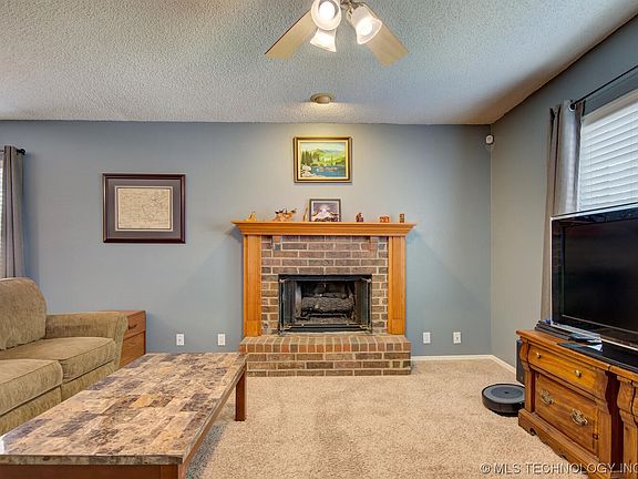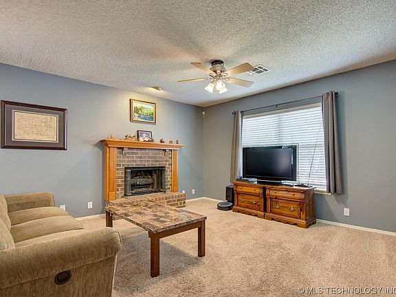 Open floor plan ranch home that backs to greenbelt w/great curb appeal nestled in Fairway Park. 3 bedroom/2 bath w/spacious entryway. Kitchen has a large peninsula & pantry. Laundry area w/mud sink. Living room offers a relaxing feel w/gas fireplace with mantle. Primary suite has an amazing walk-in closet & spacious bathroom. Relax on your covered patio w/amazing views of mature trees and fenced in yard. Large 2 car garage. Furnace 2015 mfg date/AC 2017 mfg date/ Hot water tank 9/18 installation/ Exterior was painted 2019 / Alarm system owned. Great location & access to Hwy 75 & 44/Shopping/Tulsa Hills/Jenks Schools/Riverdale Private School/Page Belcher & Oaks Country Club/ West Highlands Park/ and Walking Trails.
