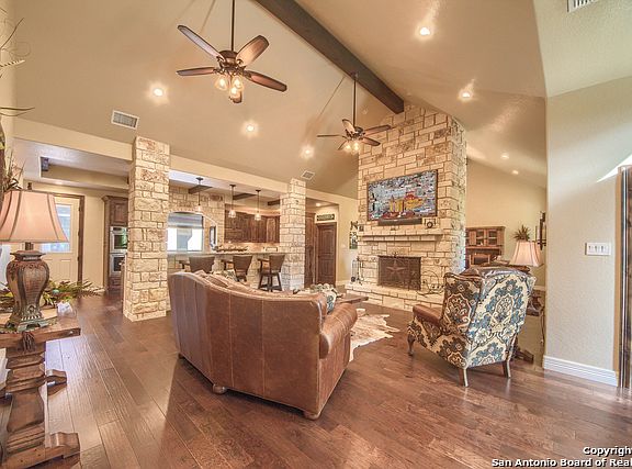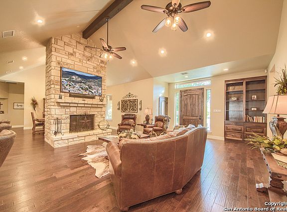 Wow! Over 5200 sqft of living space. 3 large bedrooms with 3 full bathrooms and a huge gameroom an office and a gym room. Kitchen has upgraded appliances, wine/beer fridge and a large island with breakfast bar. Master bedroom has a separate sitting area and a door to a private porch. So much storage and closet space! Lots of windows throughout, Large dining room, and upgrades galore. 2 Bedrooms have custom built ins and large walk in closets. House sits on 5 shaded acre
