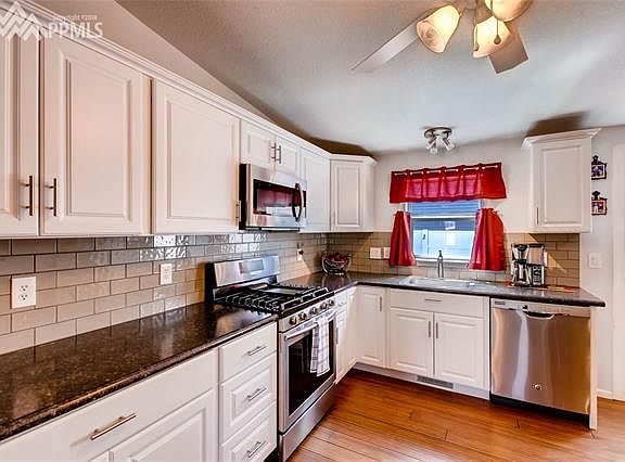 One-of-a-kind home with Pikes Peak view! Very quiet neighborhood tucked away near Bear Creek Park. This area is Colorado Springs' best kept secret! So little traffic. Enjoy the wildlife. Full rehab in the last two years including ALL new custom designed kitchen with stainless steel appliances and gas range, luxurious master bathroom with tub. This home is light and bright and has gorgeous bamboo flooring! Garage has a workshop in it. Low maintenance yard. Washer / dryer included. This home is in excellent shape and is all on one level. Crawl space. Everything you need and nothing you don't.