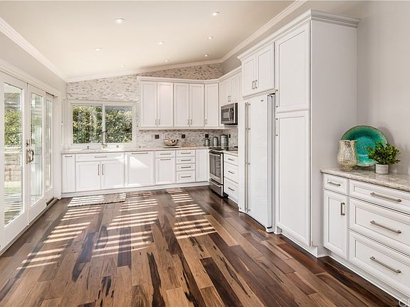 Beautifully, well kept single story home at end of cul-de-sac has great curb appeal, planters, pavers and plenty of RV parking. This immaculate home has new Anderson Windows throughout, custom shutters and Anderson French sliding doors opening to a large, flat grassy functional backyard with attached, Arched/lighted patio cover. The magnificent flooring is exotic Brazilian Pecan hardwood with beautiful 5" moulding. Your amazing, Custom kitchen has soft close doors, under cabinet lighting, custom molding w/special glaze, 2 level silverware drawer, marble back splash, pullout pantry shelving and gorgeous, contemporary Cambria quartz countertops which continues into the family room. Canned lighting adds a modern feel and adding to the already light and bright home. An extra vent was added and a special combination microwave/Advantium oven completes this dream kitchen! Master shower is upgraded, organizers added to all bedroom closets, brand new carpet in two bedrooms. A third bedroom conveniently contains a Murphy bed. Fourth bedroom has been converted to an office but still has a closet so may easily revert back to a bedroom. Spacious two car garage has been completely finished. Close to California Distinguished schools, shopping, 86 Acre Sports Park, all freeways, Irvine Spectrum, many parks and the Aliso Creek Trail. Low Taxes and NO HOA's!!!!