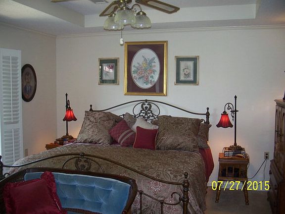 Very unique & updated custom-built home in great area! Huge family rm. plus den used as formal dining w/beautiful Oak flooring! Trey ceiling in Master BR w/5-fixture Master Bath with large tile shower. All bedrooms have own bathrooms. New kitchen has bay window, tile flooring, granite countertops w/ tile backsplash. Many built-in & quality features. Western Cedar ext. Back deck, lower patio/screened porch with great views. Includes a 16x16 outside shop bldg. plus addl. storage bldg. Sprinklered with Rainbird front/back and beautifully landscaped! Very efficient Geo-thermal heating & cooling.