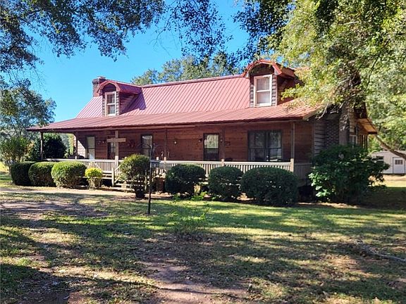 In search of a spacious home with BIG yard? Your search ends here! This rustic 4BR/3BA home in the Huguley community boasts both. The main level features a living room complete with a fireplace and wood-beamed ceilings. Both the master and an additional bedroom are adequately sized and located on the main level. The main bathroom is equipped with a jetted tub, dual vanities, and vinyl flooring. The kitchen comes with stainless steel appliances, vinyl flooring, and a breakfast bar, while the adjoining dining room also has vinyl flooring and a fireplace. Upstairs, you'll find 2 more sizable bedrooms with carpeting and 2 full bathrooms, though the plumbing to one is unconnected. Outside, HUGE front and rear porches await. The property spans approximately 1.53 acres across six lots, with a storage shed and outbuilding for ample storage. The home requires some TLC but, has so much potential! Home being sold "as is."