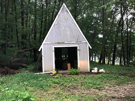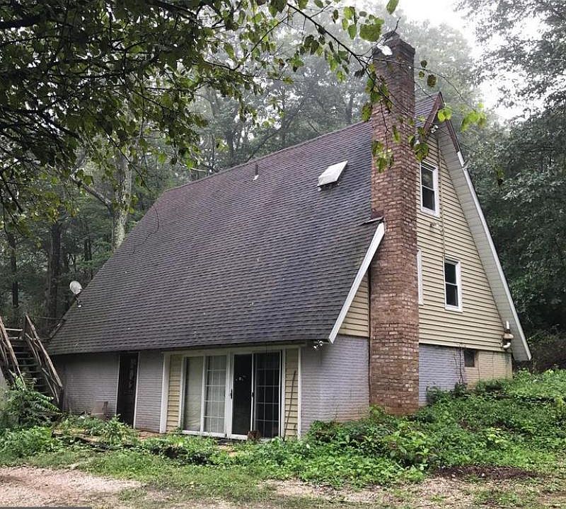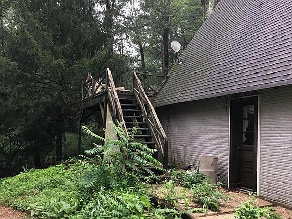 Price reduced. Private wooded location at the end of the long gravel lane. House needs total rehab! Porch is falling off. Appliances not working. Clean out is just about done so you can see the place much better. Needs a lot of work, but could be a wonderful secluded A-frame.. Sold strictly "as is" Cash or rehab loan only. 3.1 wooded acres. If you have time and energy and love privacy, this is it