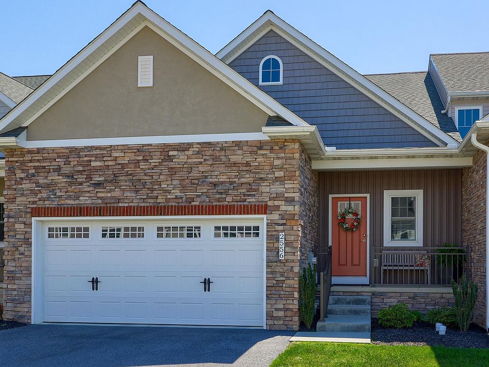 Welcome to this elegantly appointed townhome in the Haydn Manor community located in East Petersburg, just 15 minutes from Lancaster city or Lititz. Built in 2019, this home has many upgrades including an added fourth bedroom, custom kitchen, wainscoting, hardwood floors and two zone heating to name a few. The first floor primary suite with a beautiful tiled bath and walk in closet provides the ease of one-floor living. Throughout the main floor you will notice the beautiful hickory hardwood floors adding warmth and character to the open concept living area with an open staircase, great room with access to a private deck and gourmet kitchen. The kitchen is a cook's delight with plenty of storage with 42" painted cabinets, 9 ft island, quartz countertops, tiled backsplash, wine cooler and Bosch appliances. Upstairs you will find 3 additional bedrooms and a full bath. The basement is a full walkout to a patio with rough-in plumbing and large open space ready to be finished into additional living space if desired. You don't want to miss this beautiful home with carefree living where lawn maintenance and snow removal are included with HOA fee.