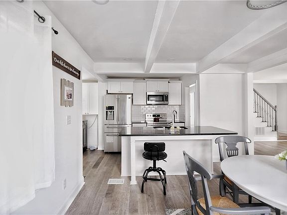 - Kitchen Features: Eat-in Kitchen, Stone Counters, Kitchen Island, Cabinets White