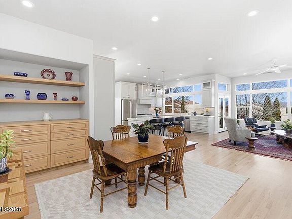 OPEN HOUSE: Sunday, February 15th from 1pm - 3pm. Experience the pinnacle of refined living in this masterfully reimagined townhome, situated on a coveted corner lot within the exclusive, gated enclave of Lakeridge Shores. Completely transformed in 2022, this residence marries high-end designer aesthetics with cutting-edge technical efficiency, offering a level of privacy rarely found in a townhome—with virtually no shared living walls. Step onto gorgeous oak hardwood floors that flow through an open-concept layout, illuminated with curated designer lighting and enormously sized windows that bring in an abundance of natural light. The chef-inspired kitchen is a showpiece of both style and innovation, featuring elegant quartzite countertops, a custom island, and a sleek, modern aesthetic achieved through hidden electrical outlets and under-cabinet lighting. The suite of premium appliances, almost entirely updated in 2022, includes designer GE Café Series appliances that ensure top-tier performance for every culinary endeavor. This home is as smart as it is beautiful. Enjoy the unparalleled convenience of main level living, highlighted by a primary suite that serves as a private retreat with spa-like finishes and a luxurious dual-head walk-in shower. For the modern driver, the finished three-car garage—a rare find in this community—comes equipped with epoxy flooring, custom storage cabinets, and dedicated EV charging capability. The residence is complemented by a high-efficiency dual-zone HVAC system and a hot water circulation pump for instant service. The expansive walkout basement boasts two bedrooms, a spacious full bathroom, an open family room with a sunny nook, a 12' x 8' bonus room ideal for a personal gym or work-from-home office, and French door access to the lower patio. Entertaining extends to the massive wraparound deck, where the desirable north and east-facing exposures provide a perfectly shaded sanctuary for alfresco dining as the sun sets. The lower patio offers a blank canvas, already prepped with gas, water, and electrical hookups. Accessible from this level is an additional 12' x 12' partially finished bonus space. This versatile area, not included in the reported square footage, is an ideal footprint for a temperature-controlled wine cellar, art studio, or professional workshop. Life in Lakeridge Shores offers a resort-style experience with access to a private marina, beach, pickleball/tennis courts, and 24/7 guard-gated security. The location is unbeatable, offering a gateway to both adventure and convenience: situated within a 10-minute drive to the Reno-Tahoe International Airport, 30 minutes to the slopes of Mt Rose Ski Resort, and only 40 minutes to the crystal waters of Lake Tahoe. Positioned within the coveted Reno High School district, this home offers both a premium lifestyle and exceptional convenience to the area's premier schools. This home provides a truly low-maintenance, high-luxury lifestyle with the HOA covering maintenance of landscaping around the homes and street snow removal. Take advantage of the favorable Nevada tax climate, including no state income tax, making this the perfect turn-key or lock-and-go residence for the discerning buyer.