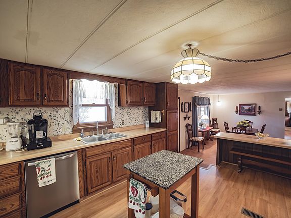 WELCOME HOME TO THIS WELL KEPT 2 BEDROOM, 2 BATH HOME ON 1 ACRE. THIS PROPERTY INCLUDES NOT 1 BUT 2 - TWO+ CAR GARAGES AND A CARPORT. WALK UP THE COVERED FRONT PORCH TO THE FRONT DOOR OF THE HOME. INSIDE YOU WILL WALK INTO THE OPEN CONCEPT DINING ROOM AND KITCHEN. THE KITCHEN COMES COMPLETE WITH REFRIGERATOR, DISHWASHER, AND STOVE. ON ONE SIDE OF THE HOME YOU WILL FIND THE TWO BEDROOMS AND ONE FULL BATHROOM. ON THE OTHER SIDE THROUGH THE KITCHEN IS A LARGE FAMILY ROOM WITH GAS FIREPLACE AS WELL ASTHE LAUNDRY ROOM/OFFICE AND FULL BATHROOM. YOU WILL LOVE THE EASY ACCESS TO THE 2 CAR ATTACHED GARAGE JUST PAST THE BATHROOM. WALK OUT THE BACKDOOR TO YOUR BACKYARD AND THE DETACHED 2 CAR GARAGE WITH PLENTY OF WORKSHOP SPACE. THIS HOME INCLUDES A ONE YEAR HSA HOME WARRANTY WITH BUYER 7 STAR UPGRADE. ALSO INCLUDED IS THE WASHER, ELECTRIC DRYER, DEEP FREEZE ALONG WITH THE KITCHEN APPLIANCES. IN ADDITION A NEW FURNACE IS BEING INSTALLED. THE MONTHLY UTILITY AVERAGES ARE: ELECTRIC-UTILITIES DISTRICT OF WESTERN INDIANA $240, GAS-VECTREN $80, WATER- NORTH LAWRENCE WATER $35, AND COMCAST AVAILABLE. THIS HOME CAN ONLY GO CONVENTIONAL LOAN OR CASH AS PART OF THE HOME IS MANUFACTURED.